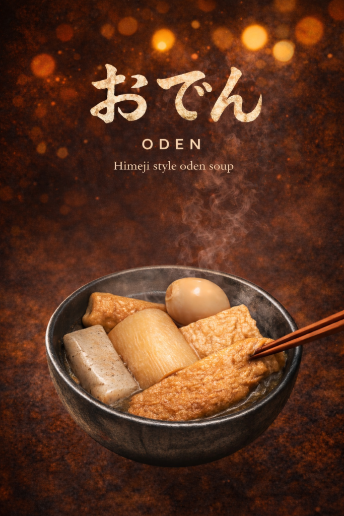 Himeji-style oden simmered through the night.