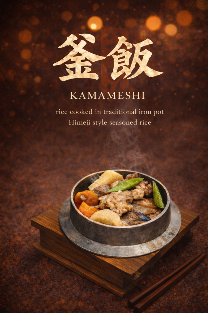 For something heartier, try our traditional kamameshi, rice cooked slowly in an iron pot with seasonal ingredients, carrying the scent of hearth and home.