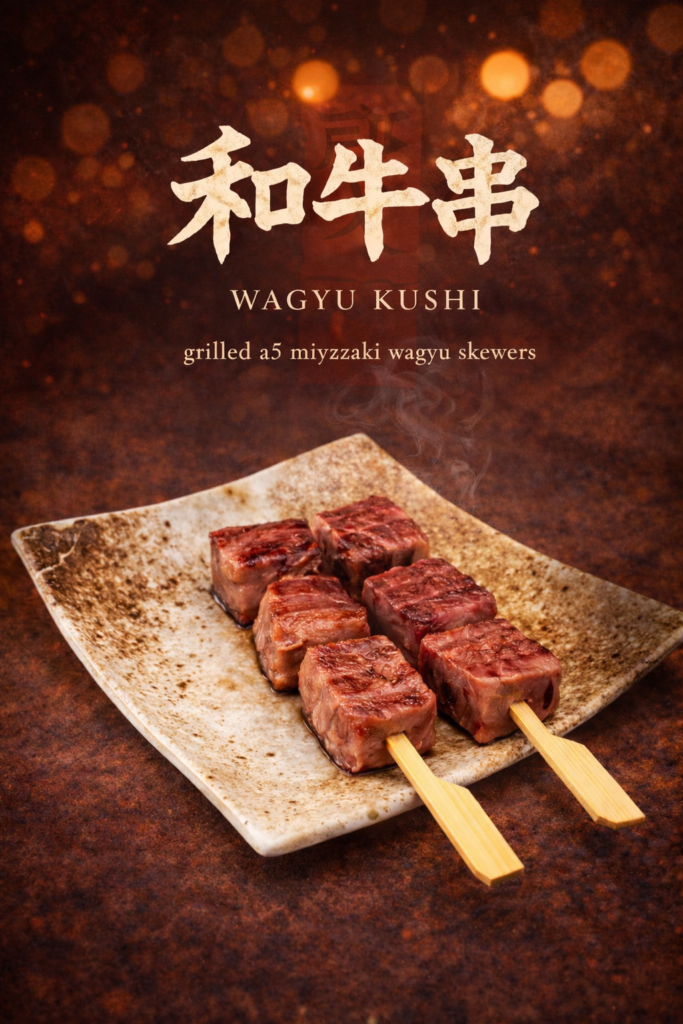And for a taste of indulgence, our wagyu skewers bring the melt-in-your-mouth richness of Japanese beef to the grill — simple, respectful, and unforgettable.
